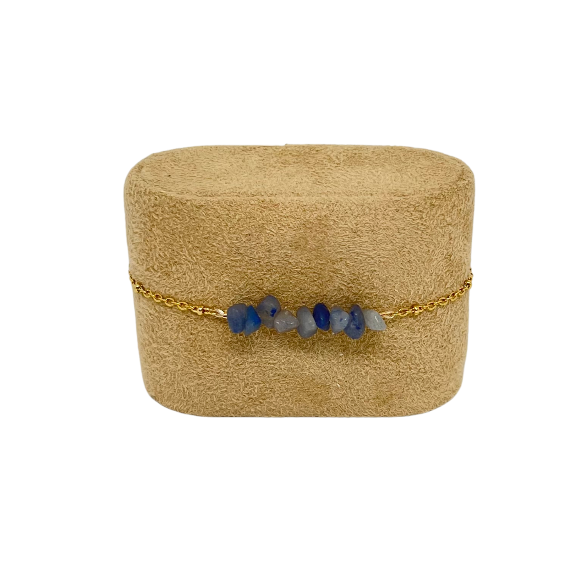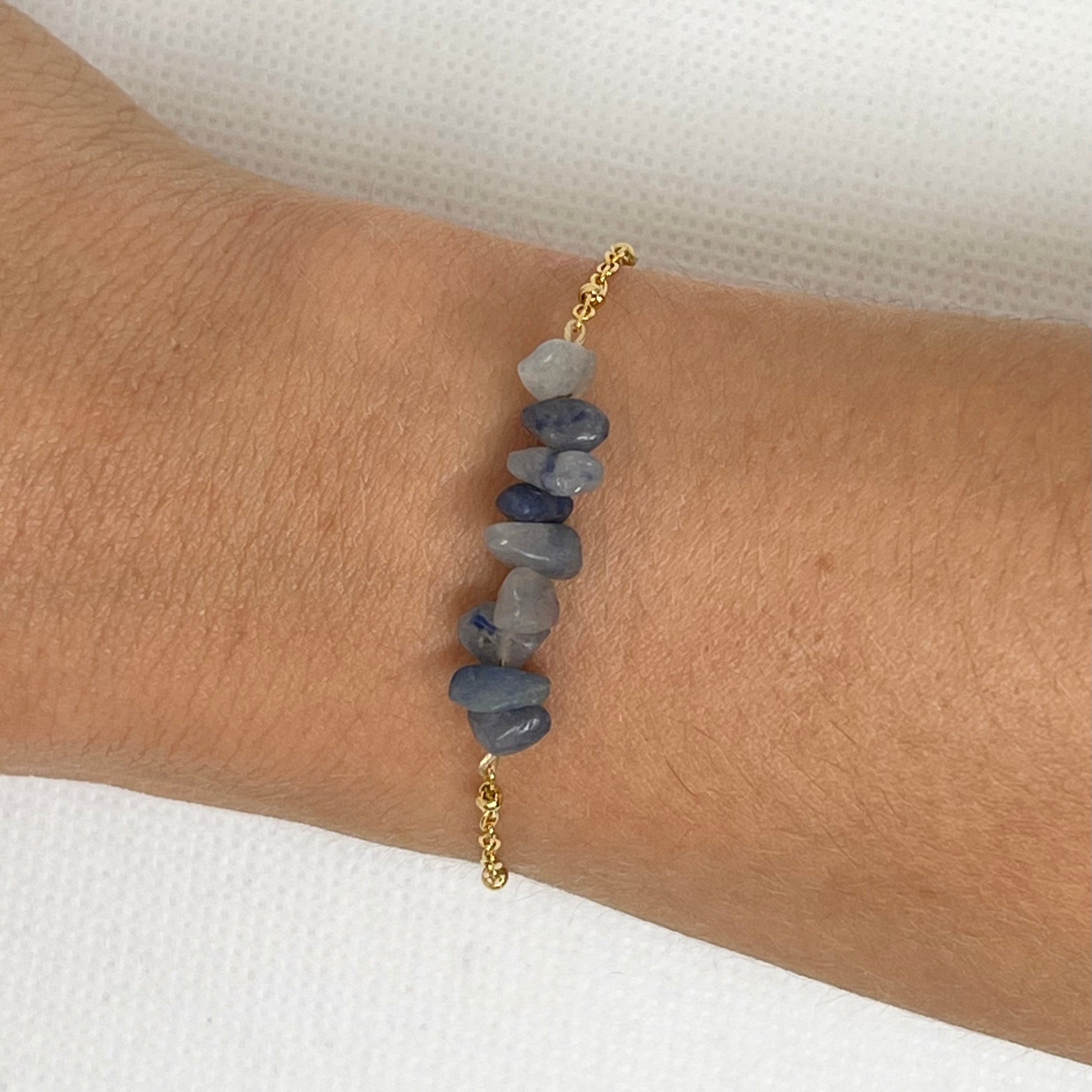 Bracelet chaîne dorée & perles semi précieuses naturelles chips aventurine bleue 💙