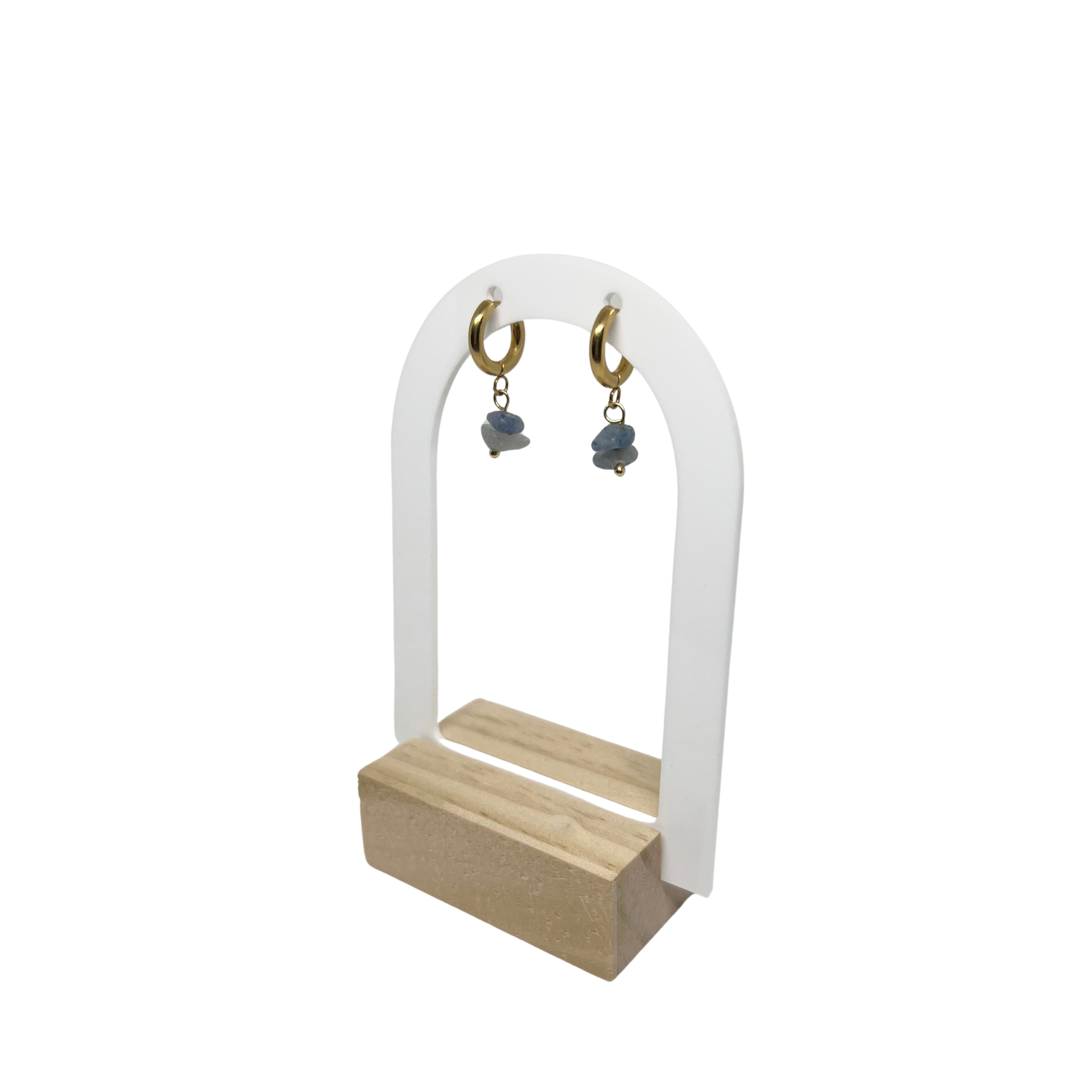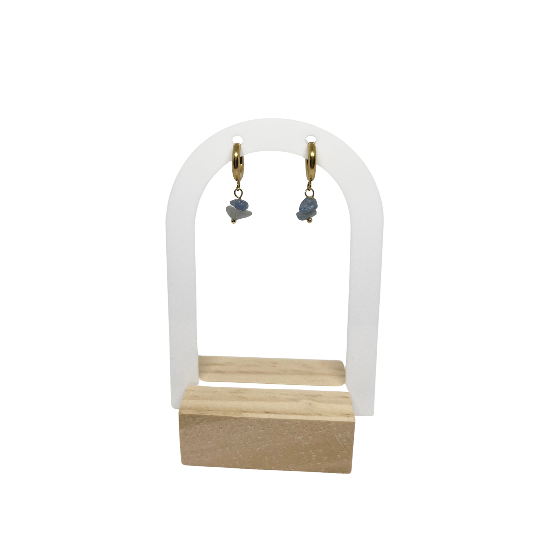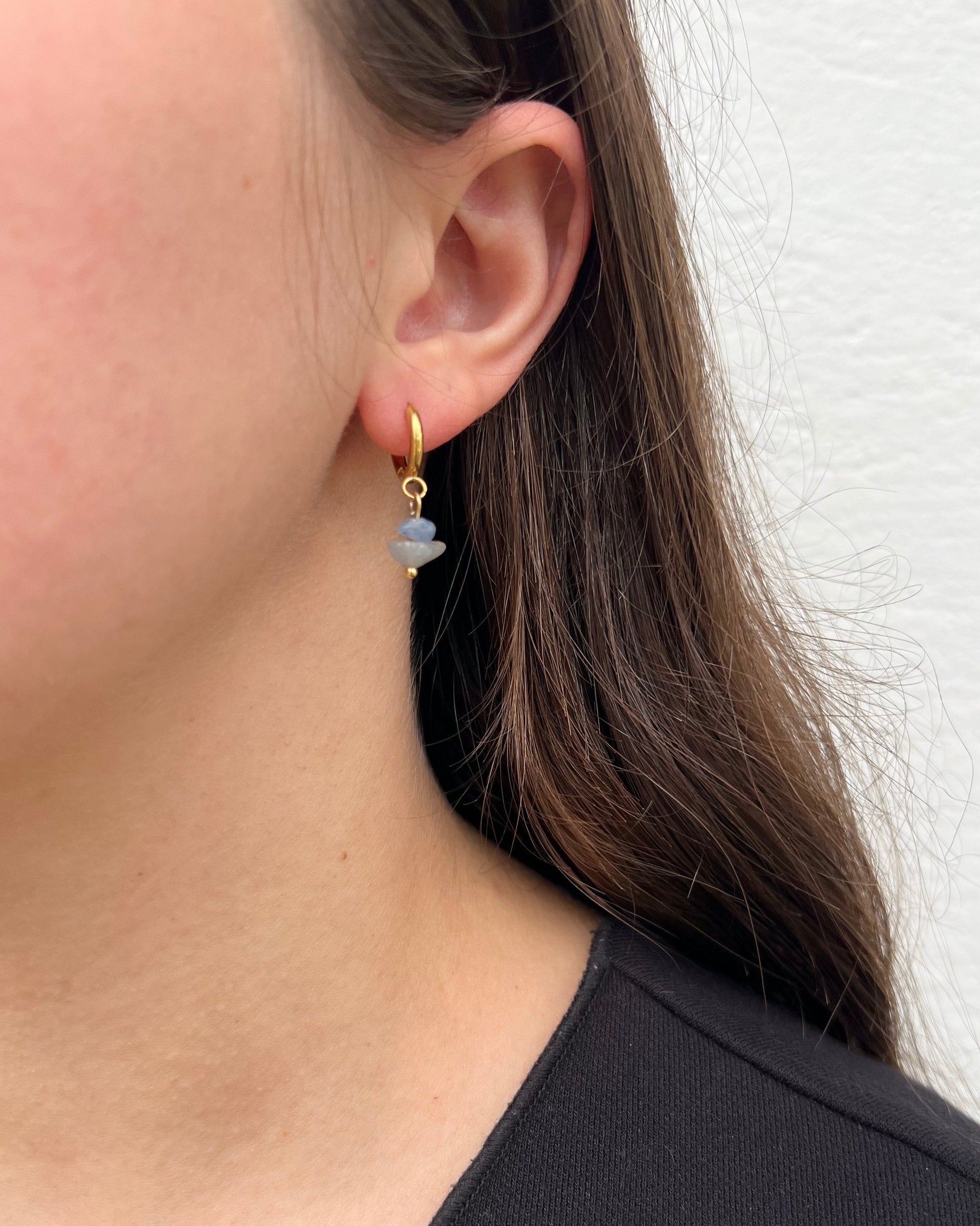 Boucles d'oreilles créoles & perles semi-précieuses chips aventurine bleue💙
