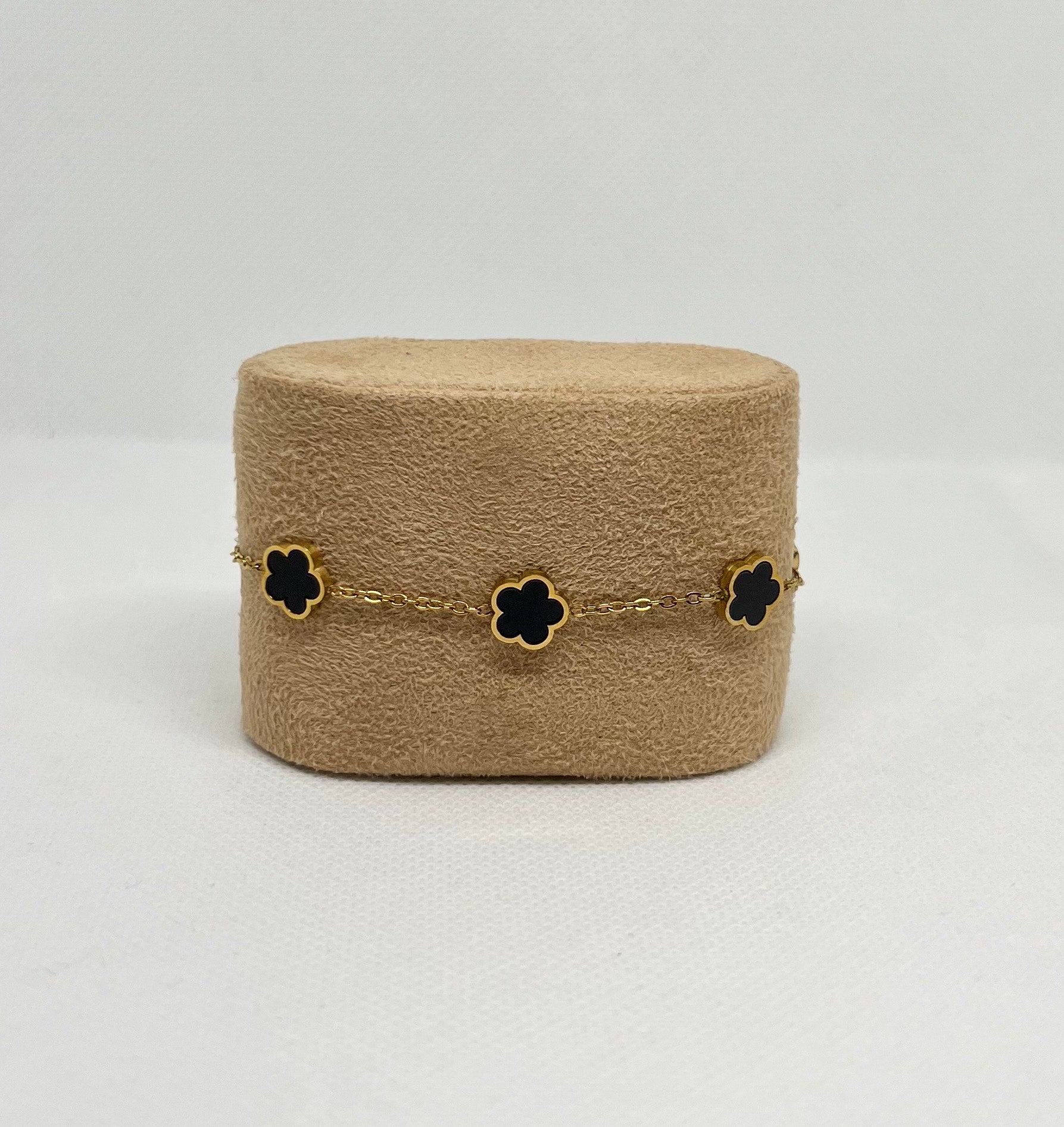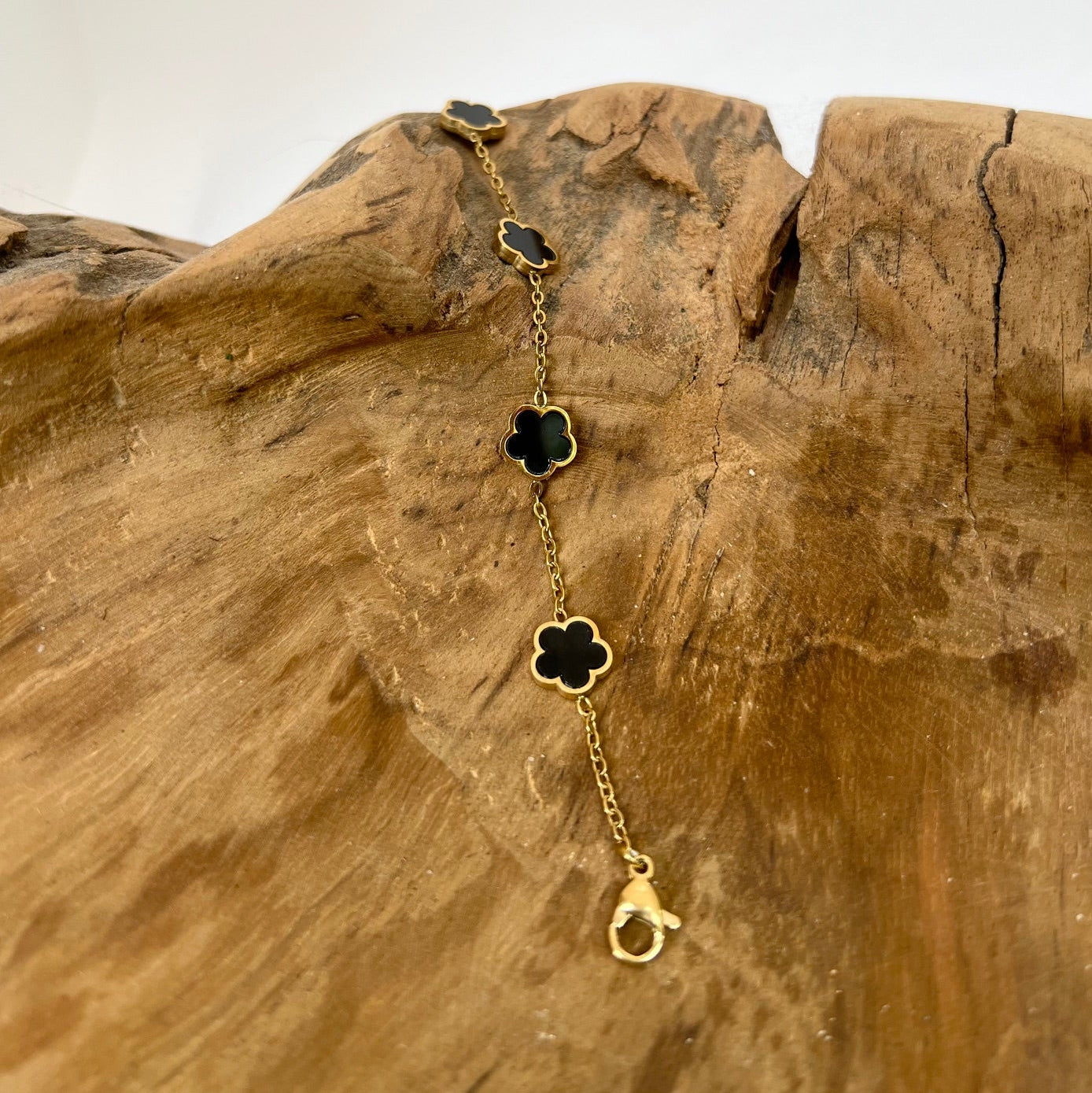 Bracelet trèfle noir "Estelle" chaîne dorée acier inoxydable