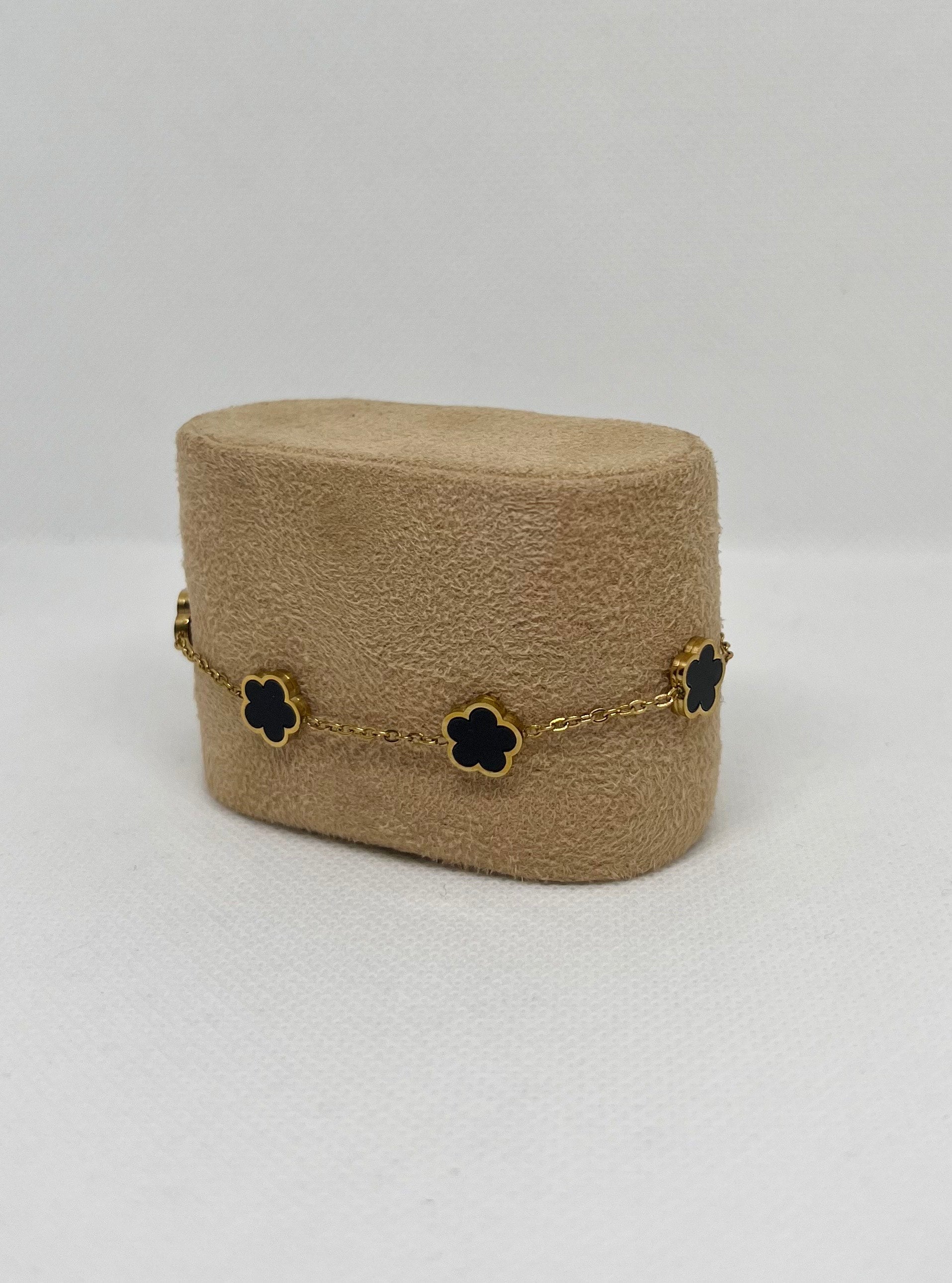 Bracelet trèfle noir "Estelle" chaîne dorée en acier inoxydable , bijoux tendance