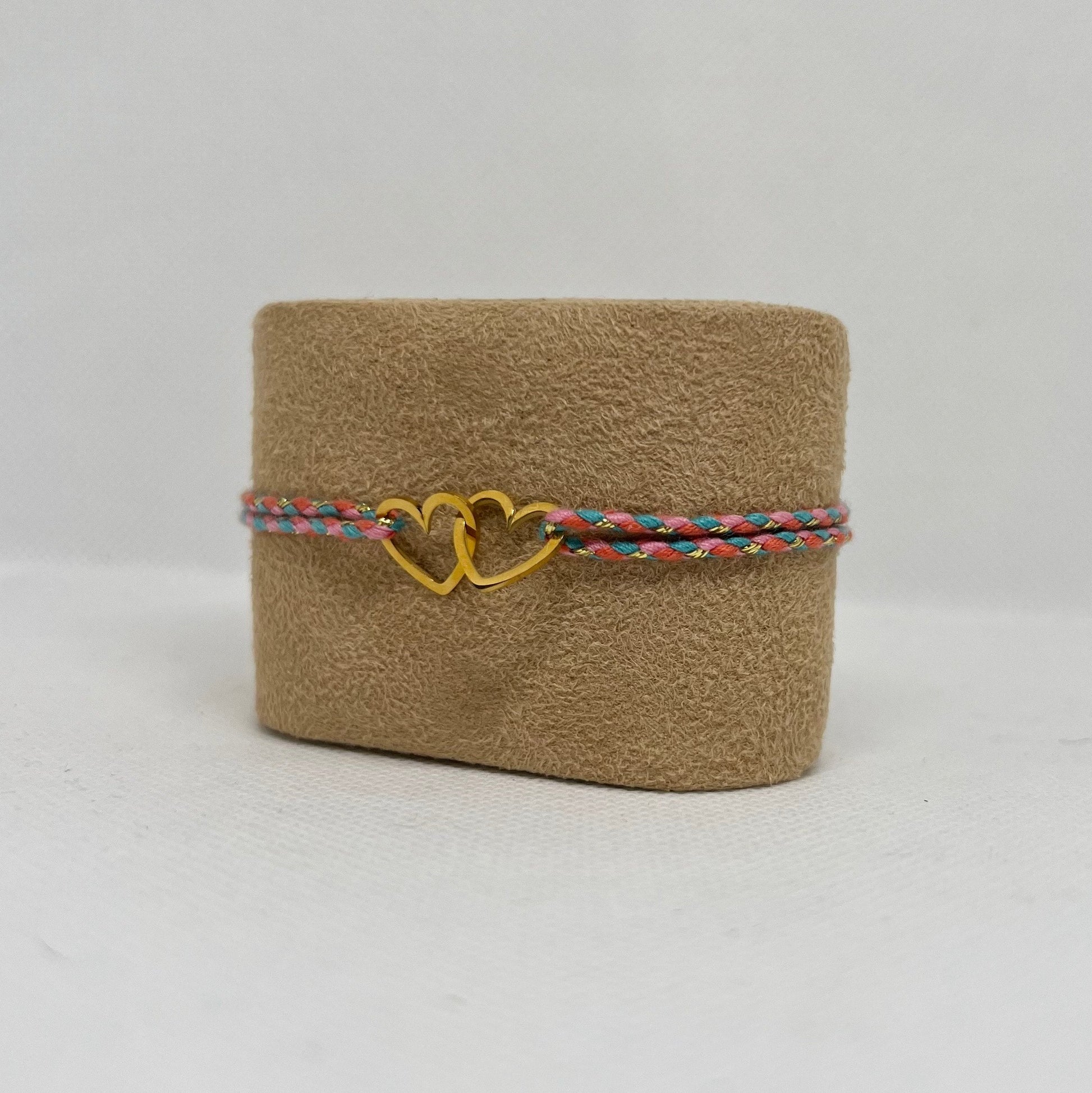 Bracelet Cœurs Entrelacés Acier Inoxydable - Cordon tressé multicolore