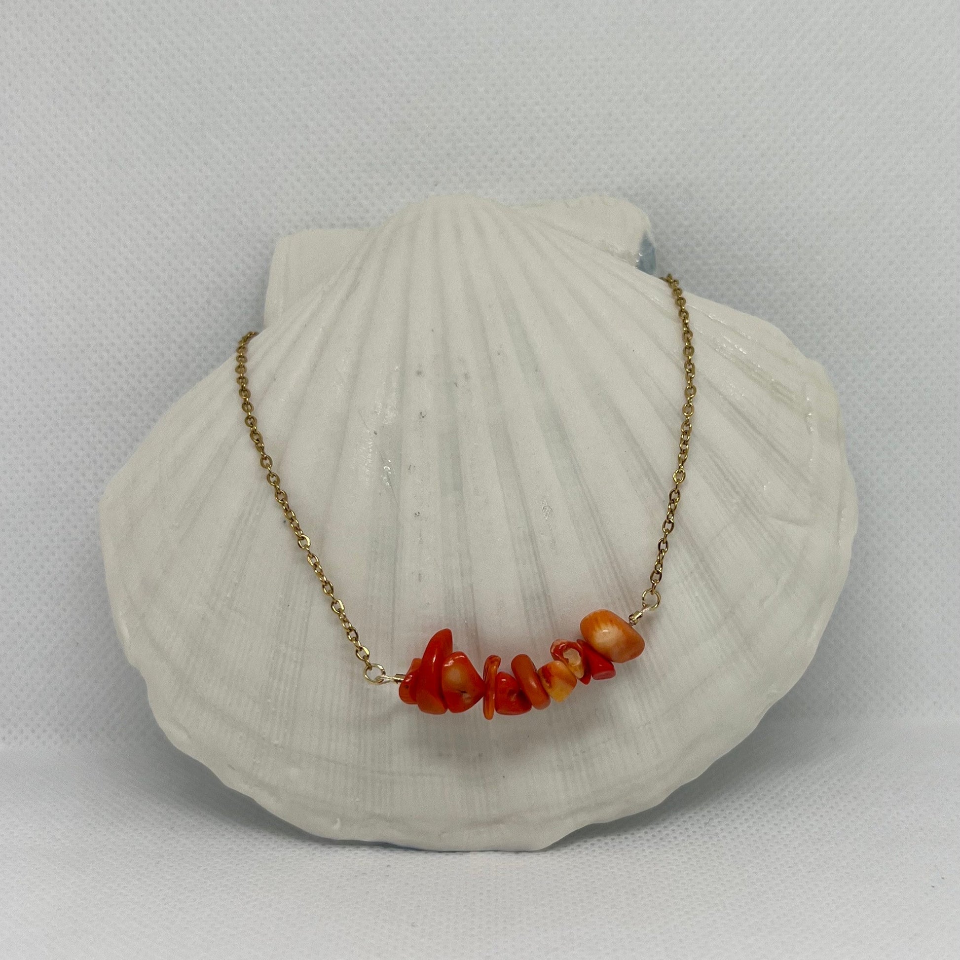 Collier chaîne dorée & perles chips rouge/orange siam ❤️🧡