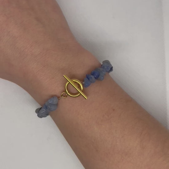 Bracelet chaîne dorée & perles chips aventurine bleue 💙
