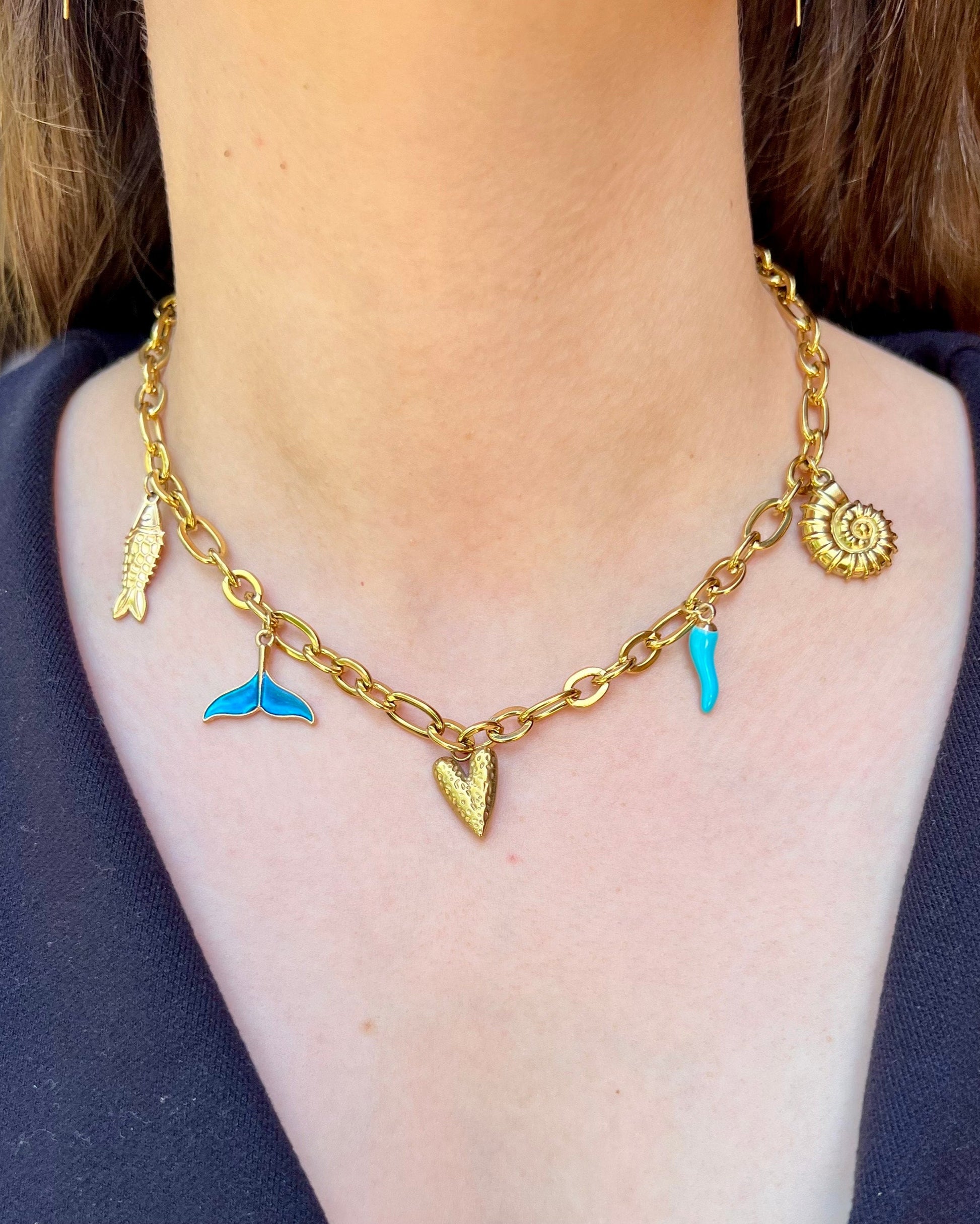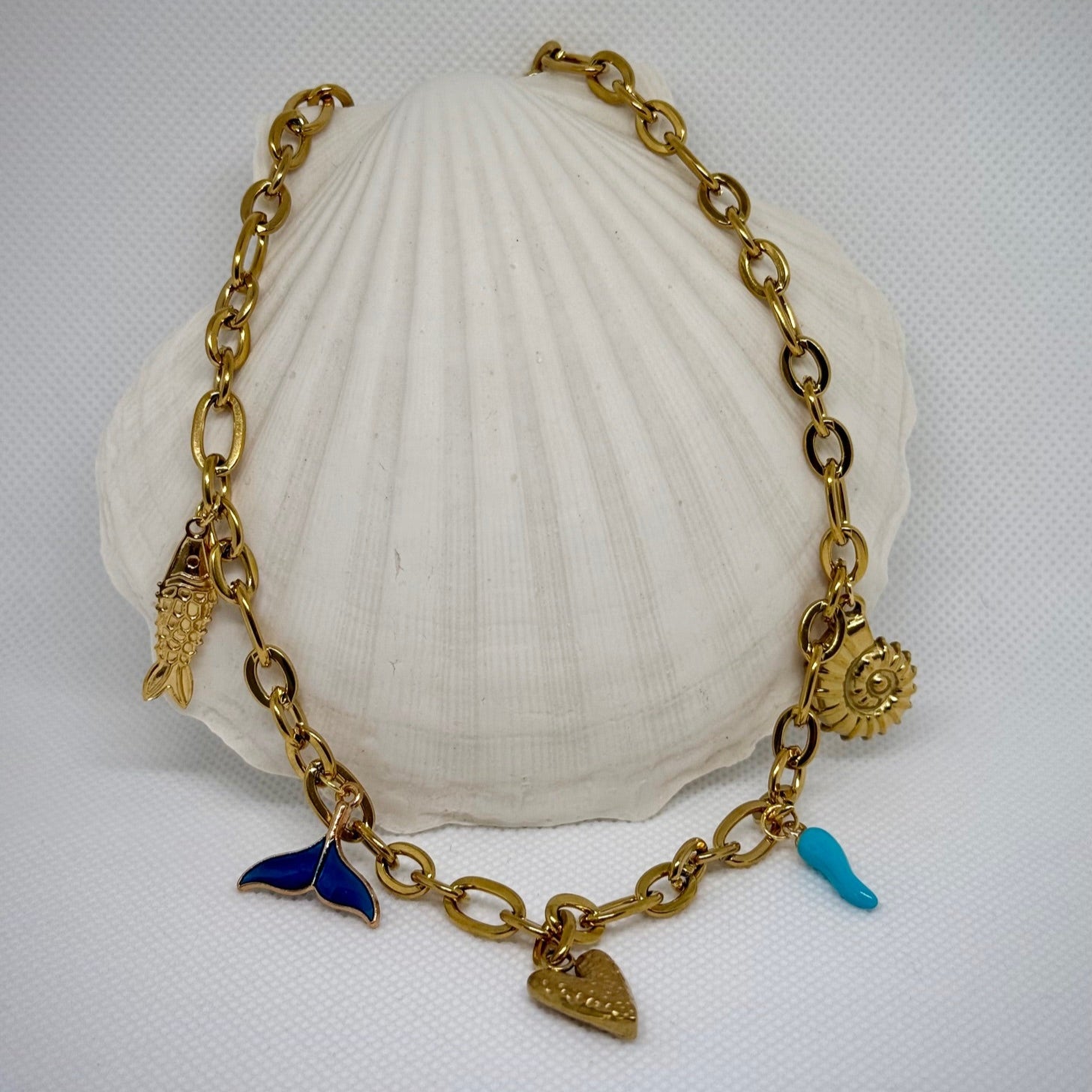 Collier "Marine" breloques charms tendance, chaîne maille dorée en acier inoxydable