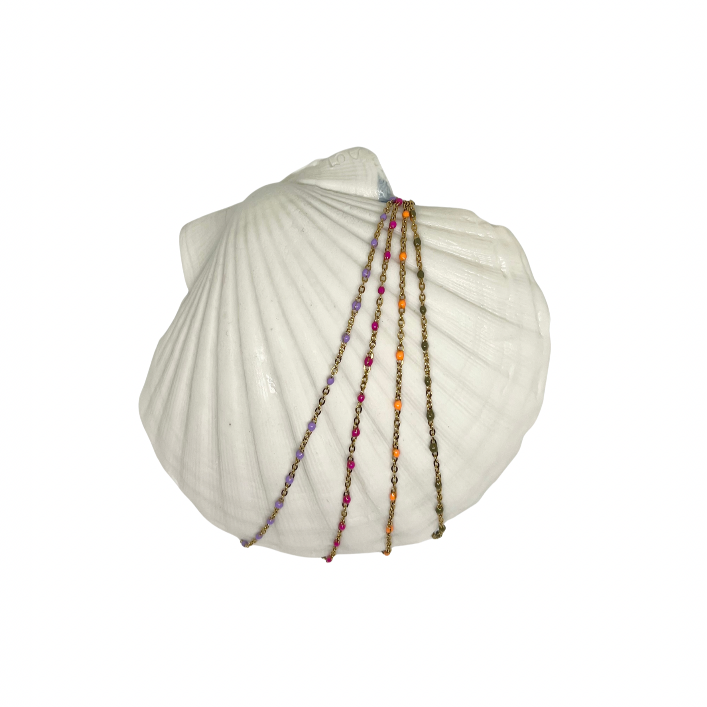 Collier "Charlotte" perles & chaîne dorée mini, pendentif initiale en acier inoxydable violet