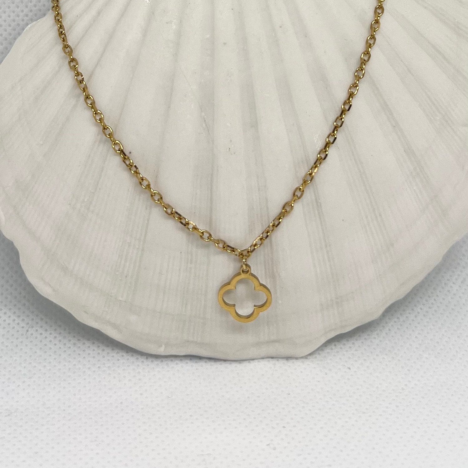 Chaîne dorée avec pendentif trèfle à quatre feuilles ♡